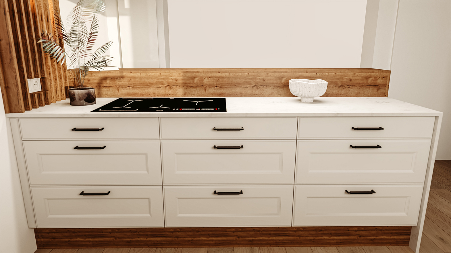• Miejsce na sprzęty wbudowane – można w nim umieścić np. zlew, zmywarkę czy płytę grzewczą, zachowując ergonomię pracy.