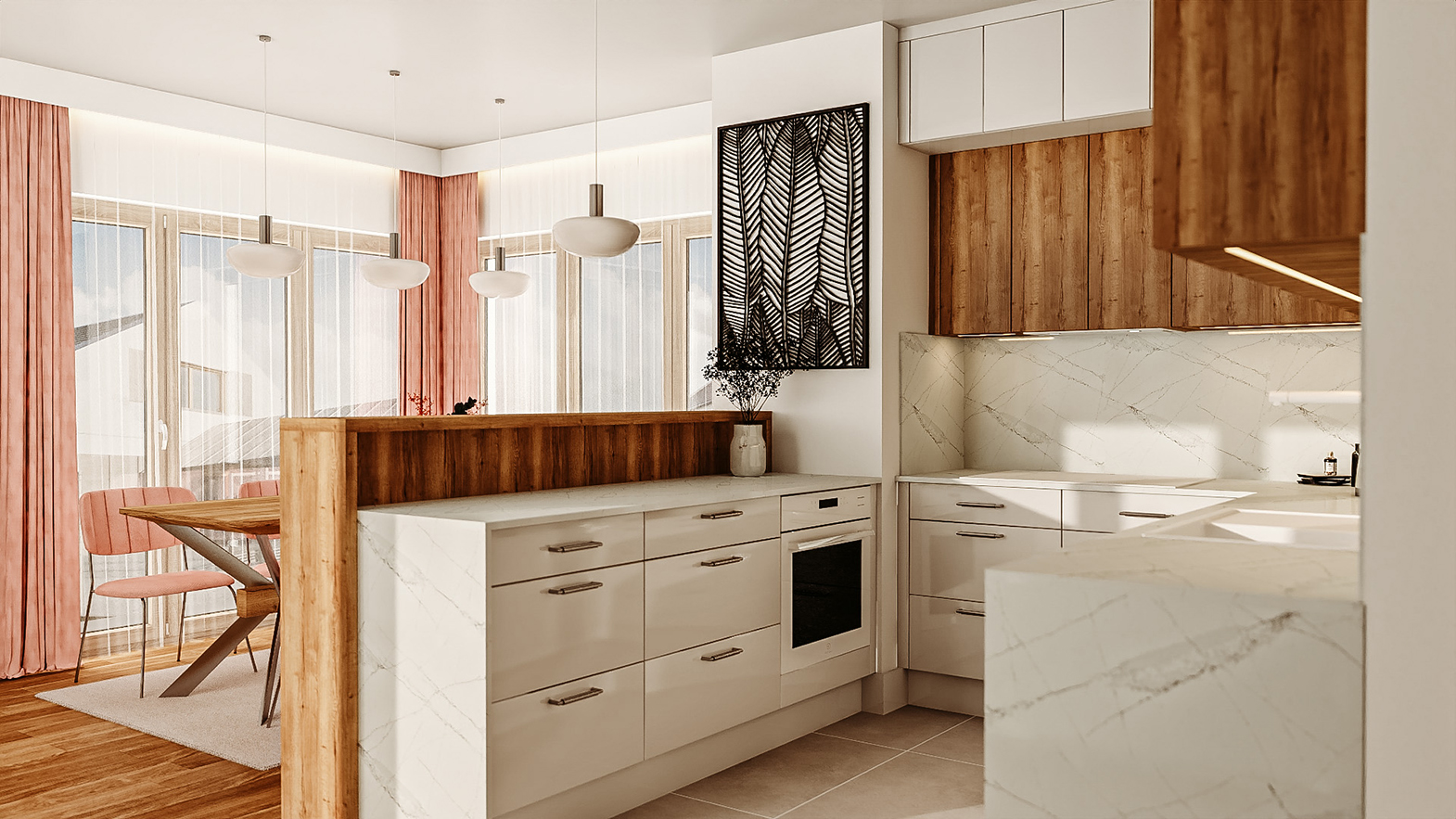 Kuchnia otwarta z półwyspem – połączenie z salonem