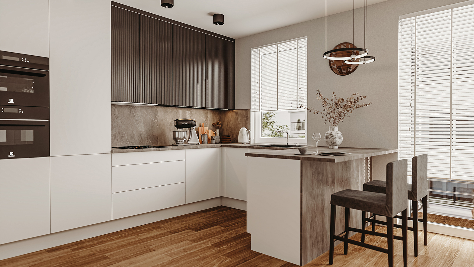 Nowoczesna kuchnia z półwyspem – minimalizm i geometryczne formy