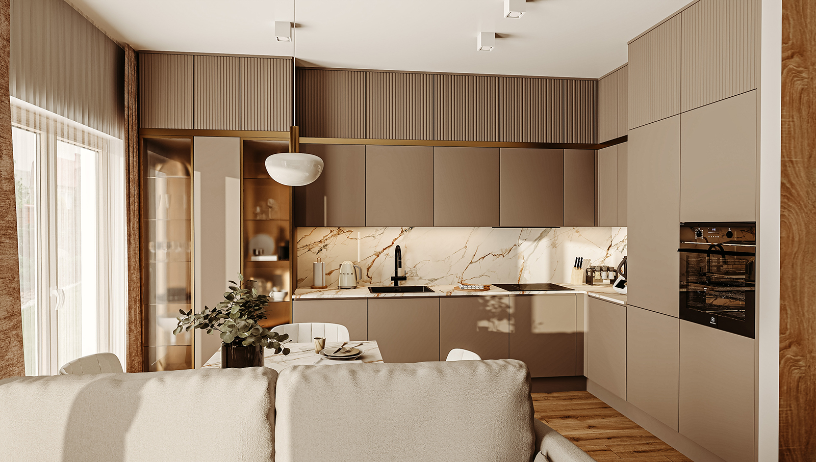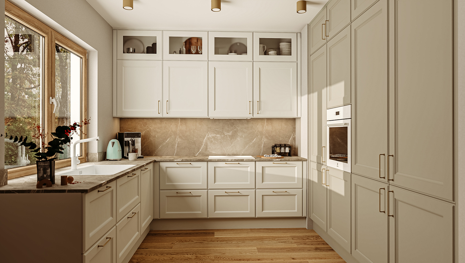 Klasyczna kuchnia daje więcej miękkości i ponadczasowego charakteru. Dobrze odnajduje się w domach rodzinnych, mieszkaniach z ciepłym wystrojem i wnętrzach, w których liczy się przytulność. Nie oznacza ciężkiej formy. Oznacza przemyślane detale i spokojniejszy rytm aranżacji.